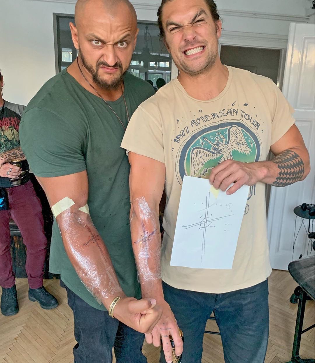 Jason Momoa Tattoo : Jason Momoa S Tattoos Explained Jason Momoa News / Jason momoa's tattoos that you can filter by style, body part and size, and order by date or score.. That tattoo perhaps holds the. Jason momoa is a peaceful warrior. Jason momoa appeared in the latest aquaman movie (2019) covered head to toes in tattoos. Today was an incredible day i got to watch my friends make amazing art. He has a tattoo on his right forearm that says etre toujours ivre, or to be always drunk. this content is imported from instagram.